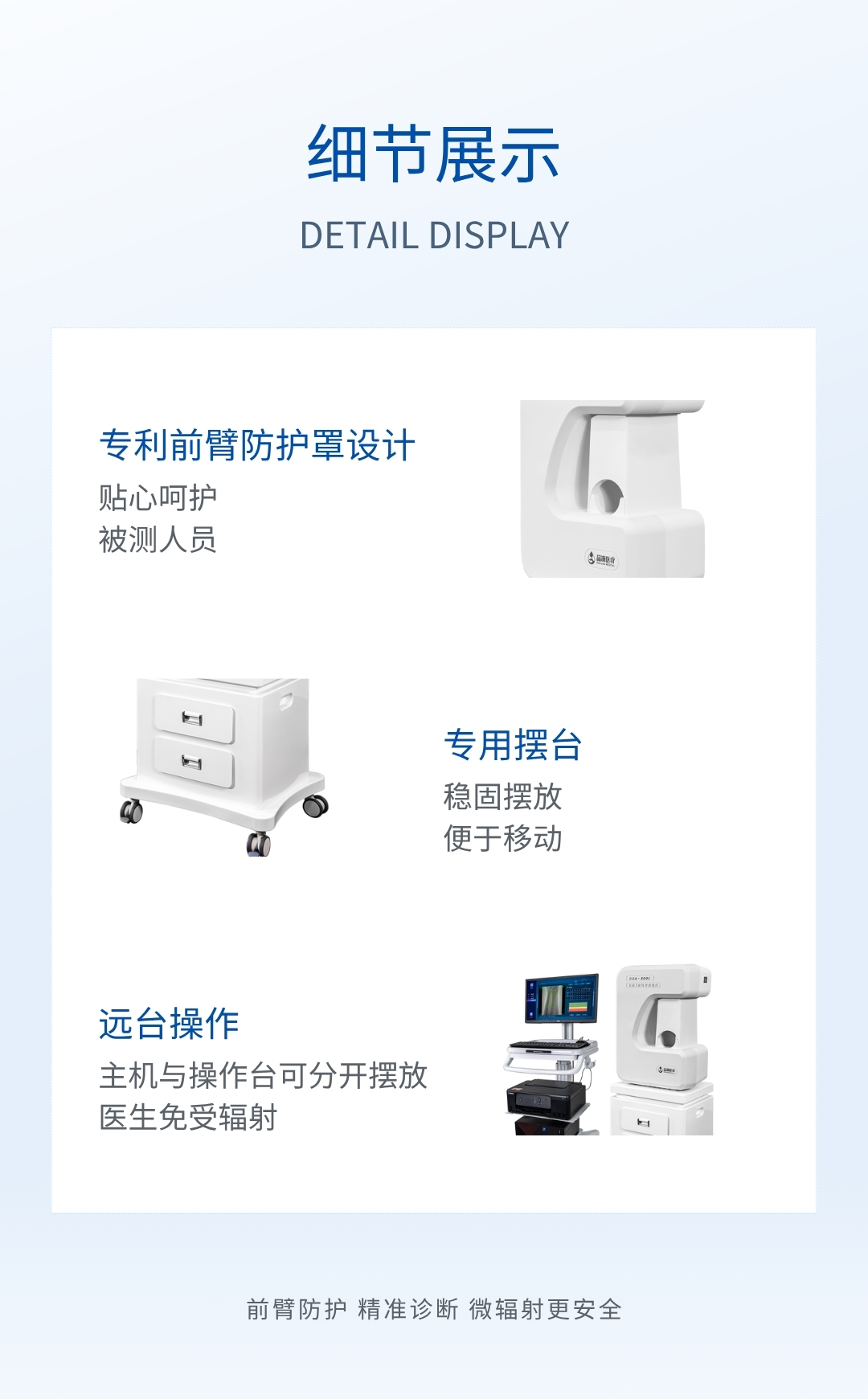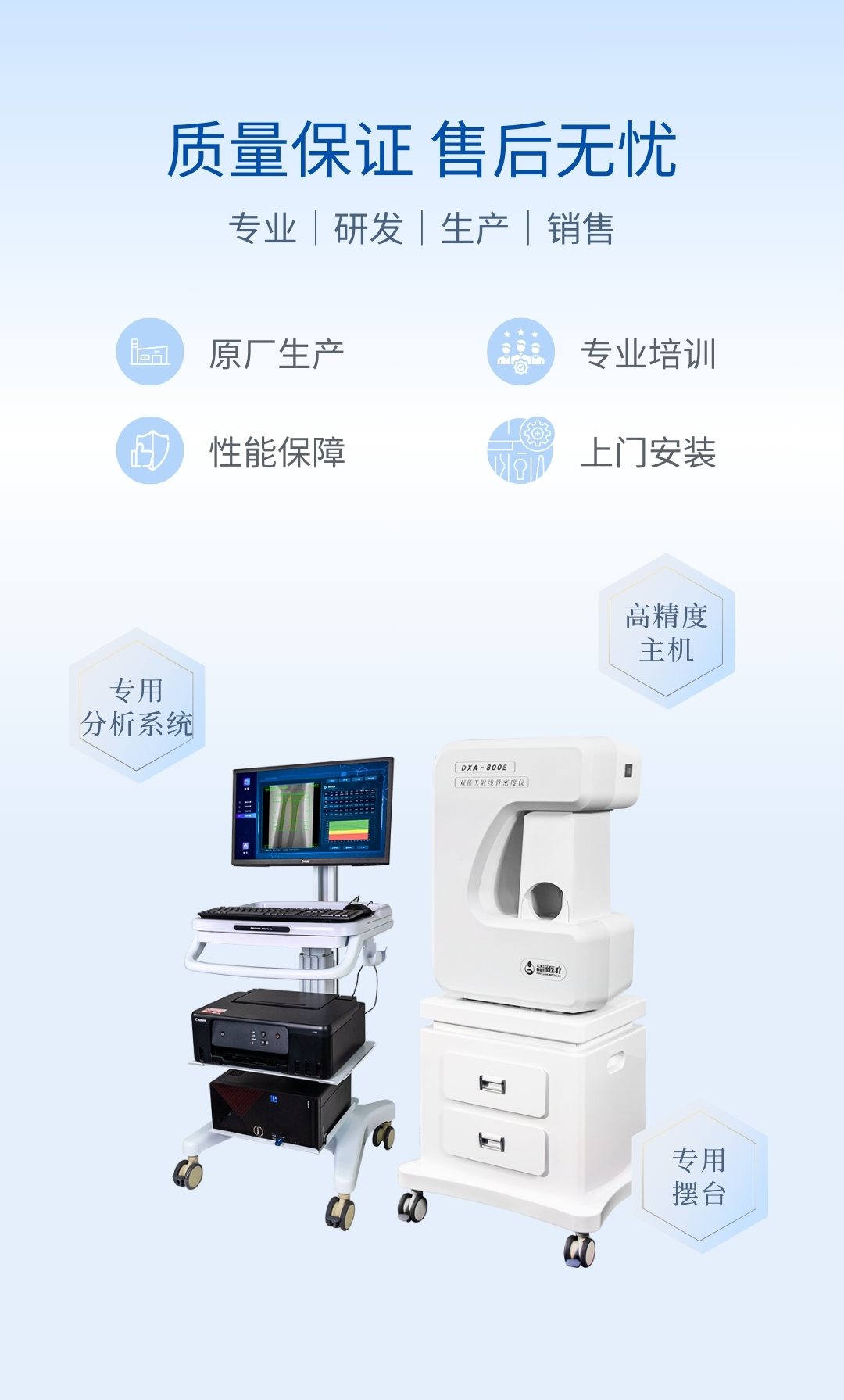 DXA- 800E 雙能 X 線骨密度儀測量骨密度,準確度較高,重復性較好,是醫(yī)生臨床診斷好幫手。