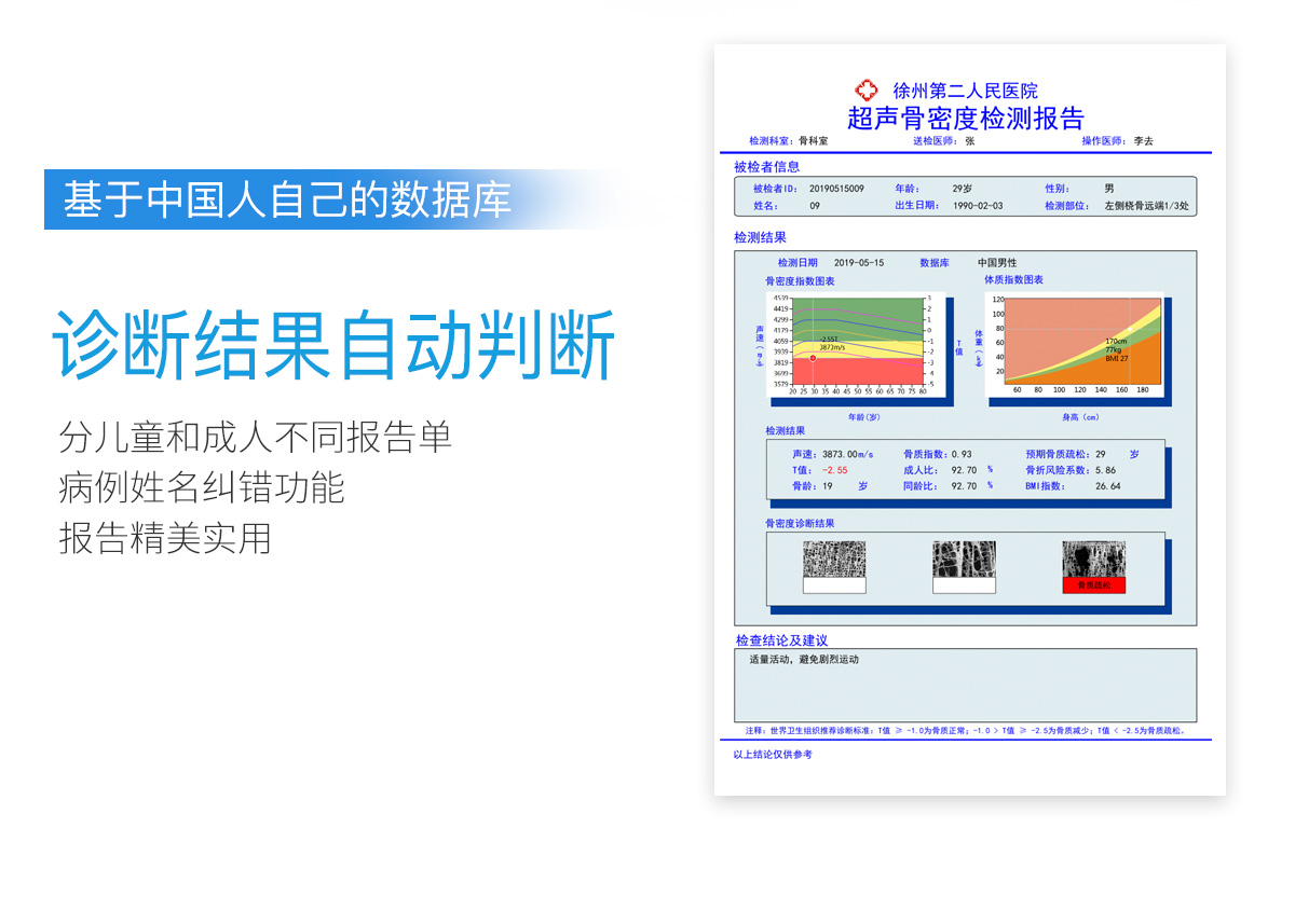 ■ 軟件優勢::BMD-A系列超聲骨密度檢測儀一臺儀器裝配有智能分析系統,經濟實用。可測量0-100歲人群。